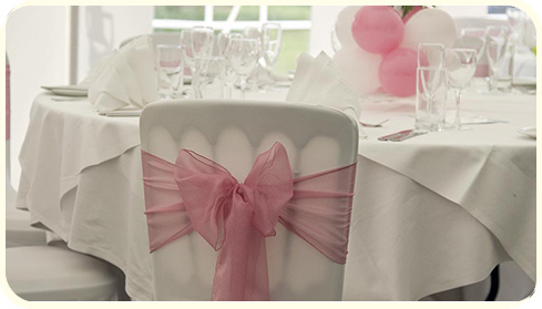 Additionally we provide high quality chair covers in a variety of sizes and styles, together with organza sashes in a range of stunning colours with matching table runners to compliment the overall table image and give your venue an air of elegance.